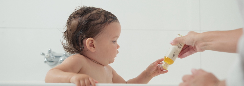 Een huidverzorgende en rustgevende badolie voor de verzorging, ontspanning en milde reiniging van de babyhuid. De badolie reinigt zacht zonder uit te drogen en laat een beschermend laagje achter. Deze biologische badolie maakt van het badritueel een moment van ontspanning en verbinding, ideaal voor het slapengaan.